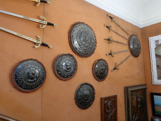 He ended up buying two sets of medium-sized miniature swords arranged on a wooden shield in a circular pattern. The first collection included replicas of Excalibur and the swords of famous historical heroes like El Cid, Charlemagne, Attila the Hun, Alexander the Great, Richard the Lion Heart, King Solomon, and the Round-Table knights. The second one included those of Conan the Barbarian, Xena the Warrior Princess, Odin, Robinhood, and Don Quixote, as well as Templar, pirate, and gladiator swords. I was as much excited for his haul as he was.